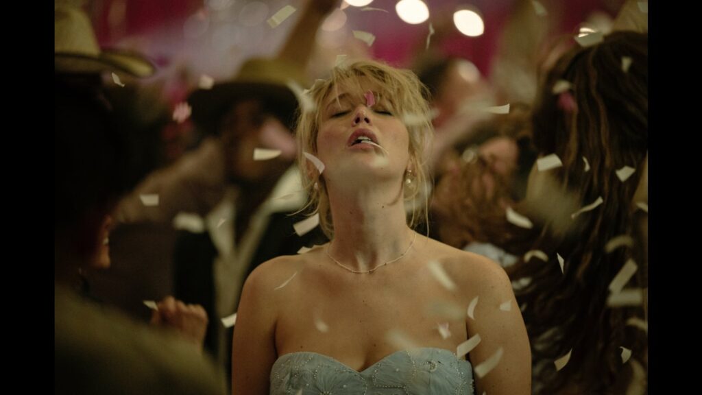 Grace und Jackson, gespielt von Jennifer Lawrence und Robert Pattinson ziehen sich auf ein Haus am Land zurück. Nach der Geburt ihres Kindes fällt Grace in ein emotionales Tief und Jackson ist viel unterwegs. Postpartale Depression als Thema in Lyne Ramsays neuestem Film Die, My Love wird zwar nie angesprochen aber ist doch nicht zu übersehen. Dass sich Jackson zurückzieht und Grace augenscheinlich in ihrer Verzweiflung allein lässt oder das sein Verhalten gar der Auslöser sein könnte sind Andeutungen, die der Film macht aber die Problematik doch sehr verkürzt darstellen. Grace‘ Eskapaden werden so gedeutet, als sei sie verrückt geworden. Hier fehlt es dem Drehbuch an Tiefe.